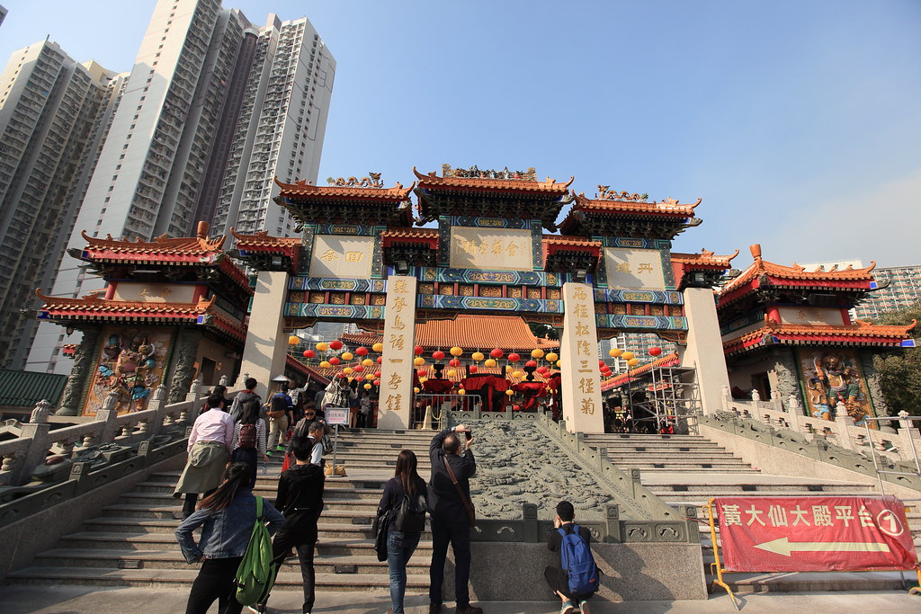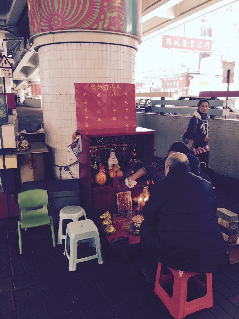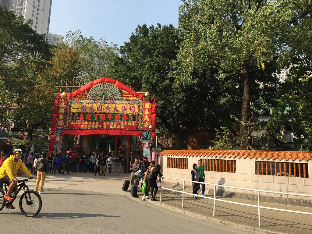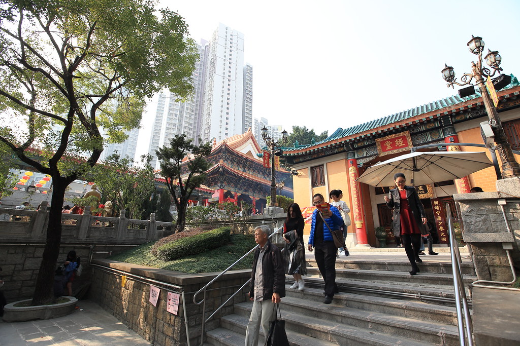 到了黃大仙廟囉,發現他們供品其實都放在地上,是跟台灣有點不大一樣。裡面也有一些花園。