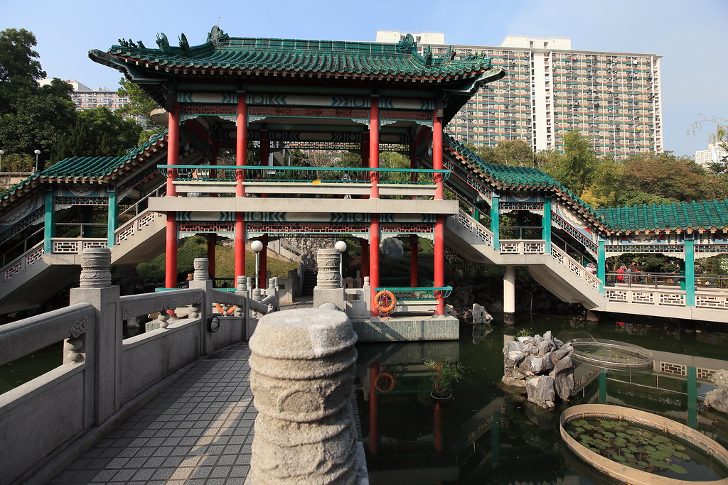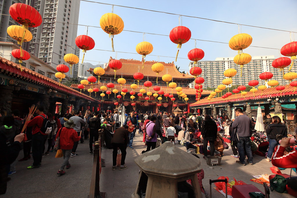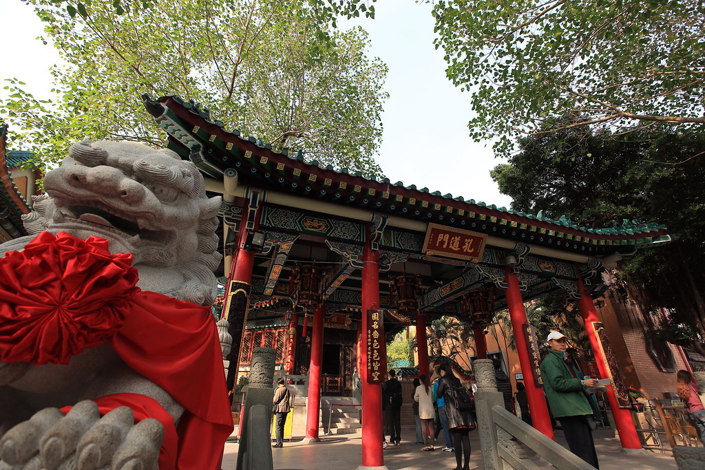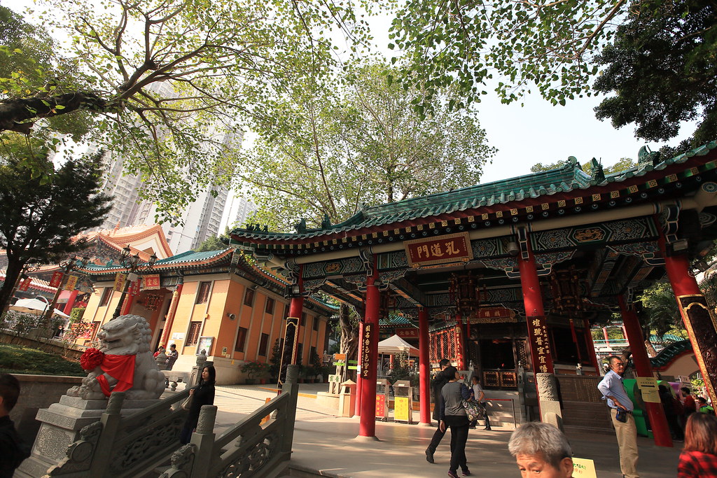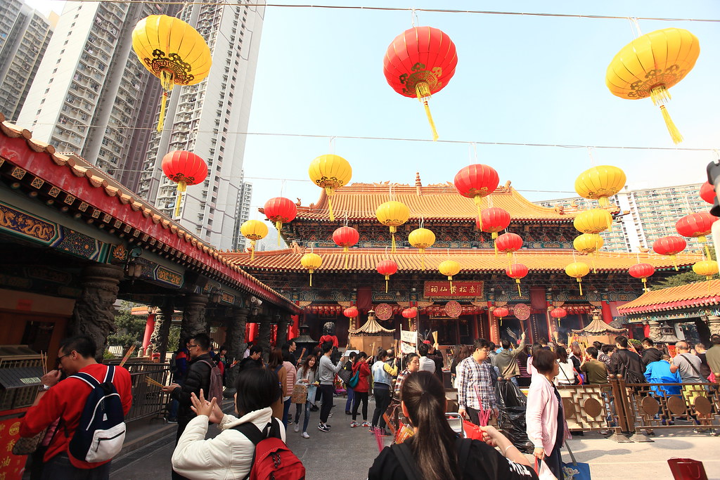 到了黃大仙廟囉,發現他們供品其實都放在地上,是跟台灣有點不大一樣。裡面也有一些花園。