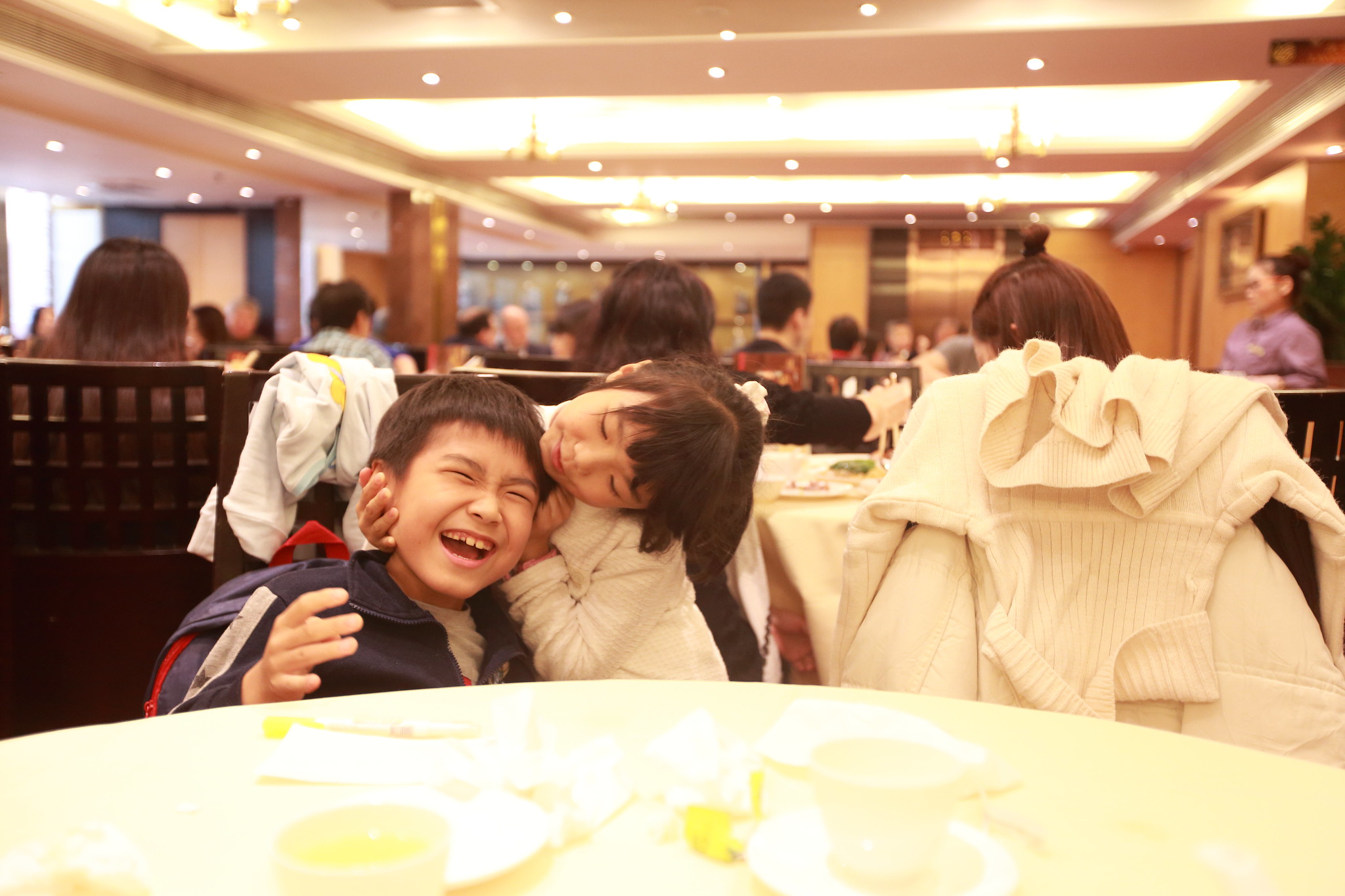 兩個孩子一進餐廳就開始玩耍起來,精力真是無限啊!😅