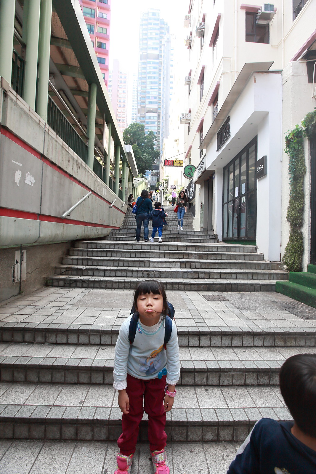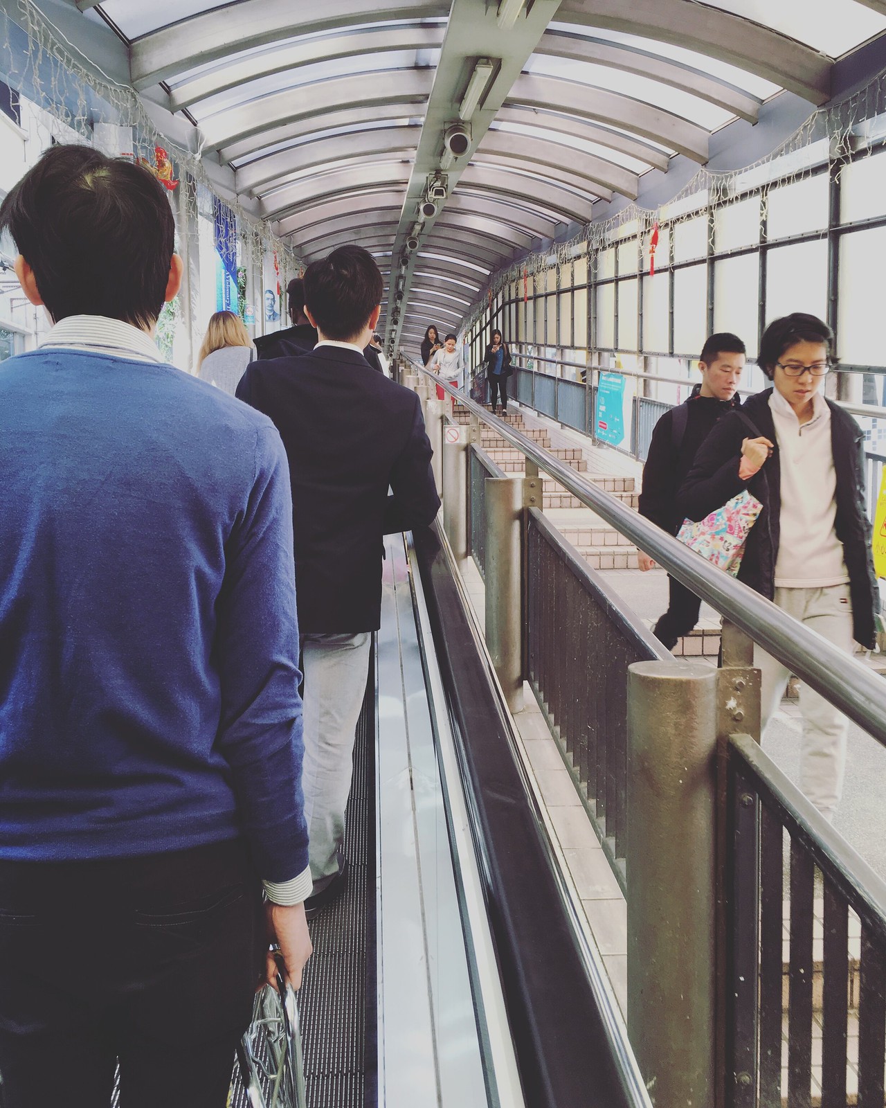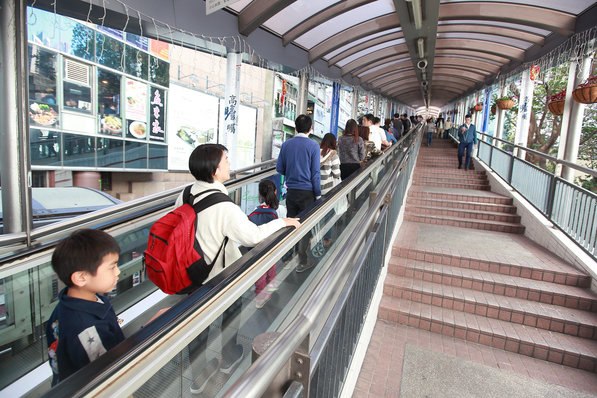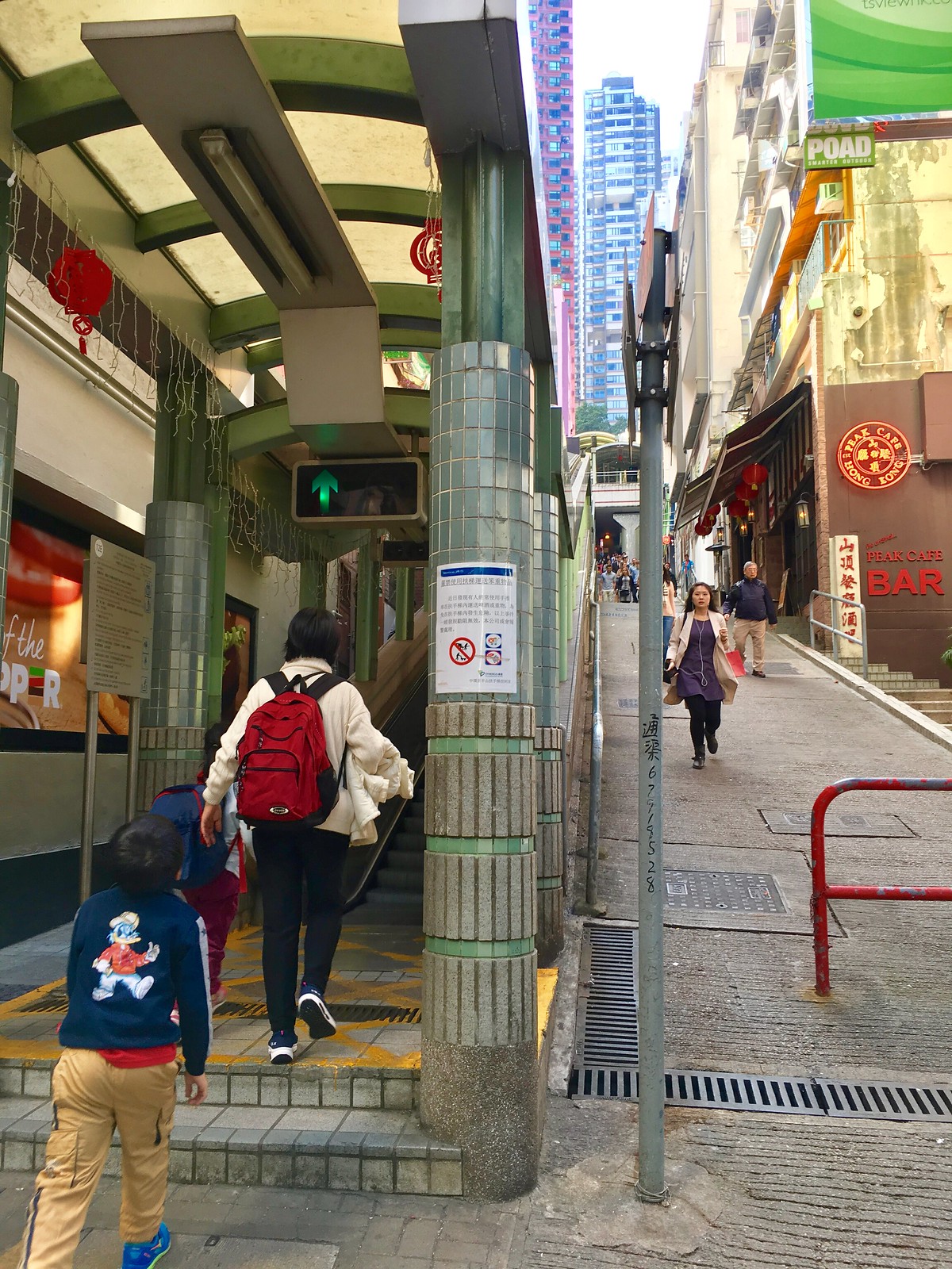 終於抵達傳說中的半山電扶梯!聽說下午會變成上坡方向,建議大家下午再來比較輕鬆,不然可是會爬到腿軟的! 😅